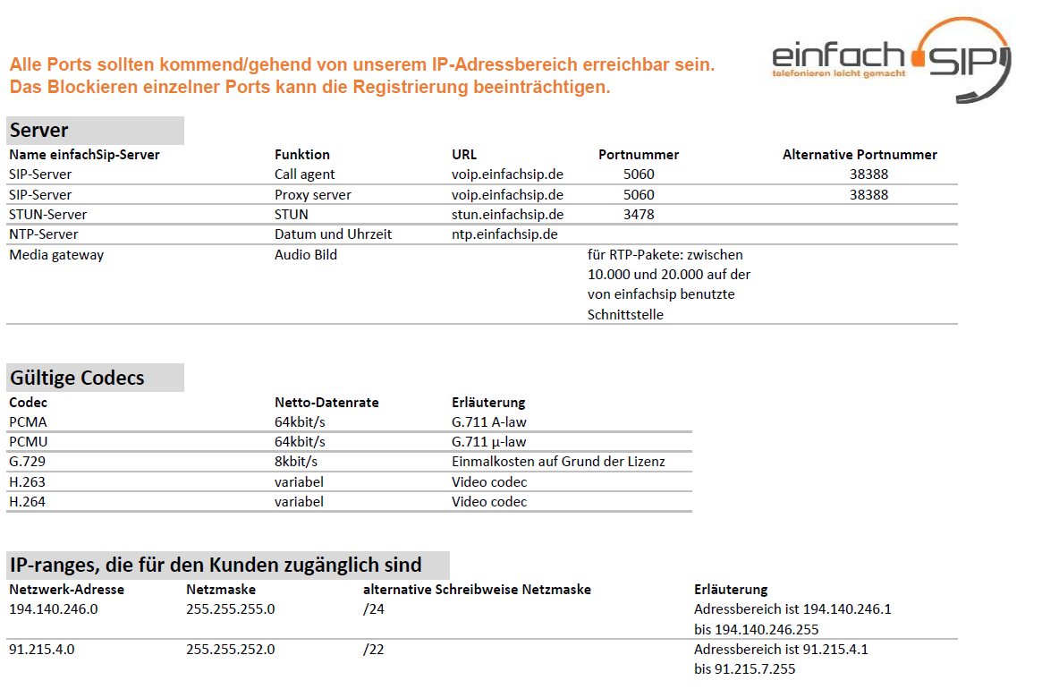 Für allgemeine technische Anfragen nutzen Sie bitte folgende eMail: service@einfachsip.de